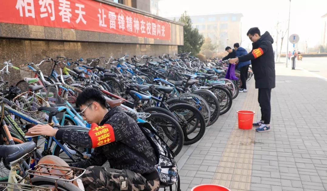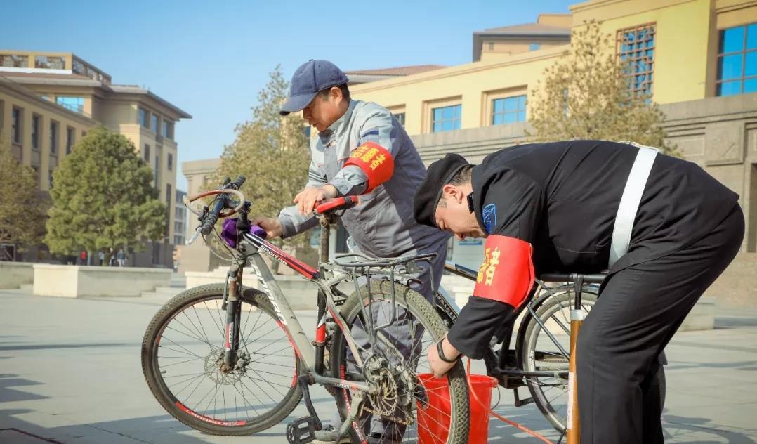 精业务,细服务——雷锋看齐在当前。物业职工服务点:设立失物招领处,自发为学生自行车打气、齿轮上油,放置急救箱、针线包、用“雷锋日记”来记录学生所需的帮助及教师办公室深度清洁等。学生志愿服务点:开展擦拭自行车并将其合理摆放在规定的区域、在草坪捡漂浮物、烟头、擦拭路灯杆、清理课桌小广告等活动,动员全体师生,共建美丽校园。