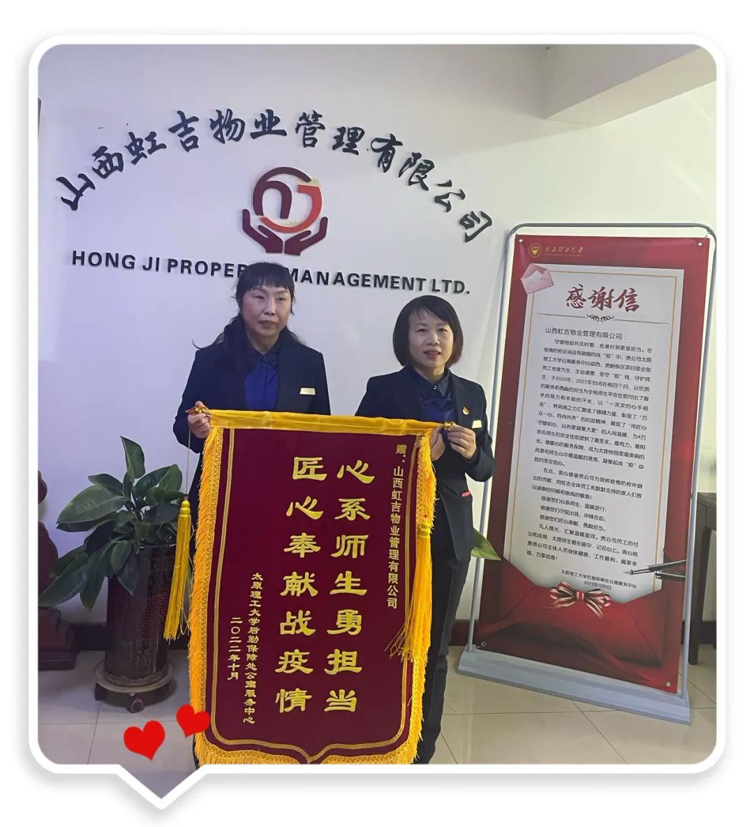 锦旗与感谢信承载着对虹吉物业和员工